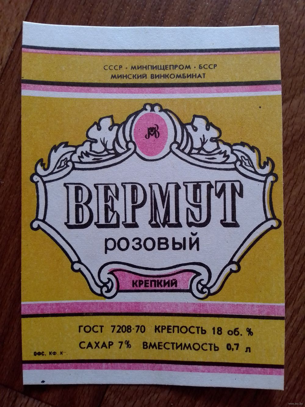 Этикетка от вина. БССР. Минск