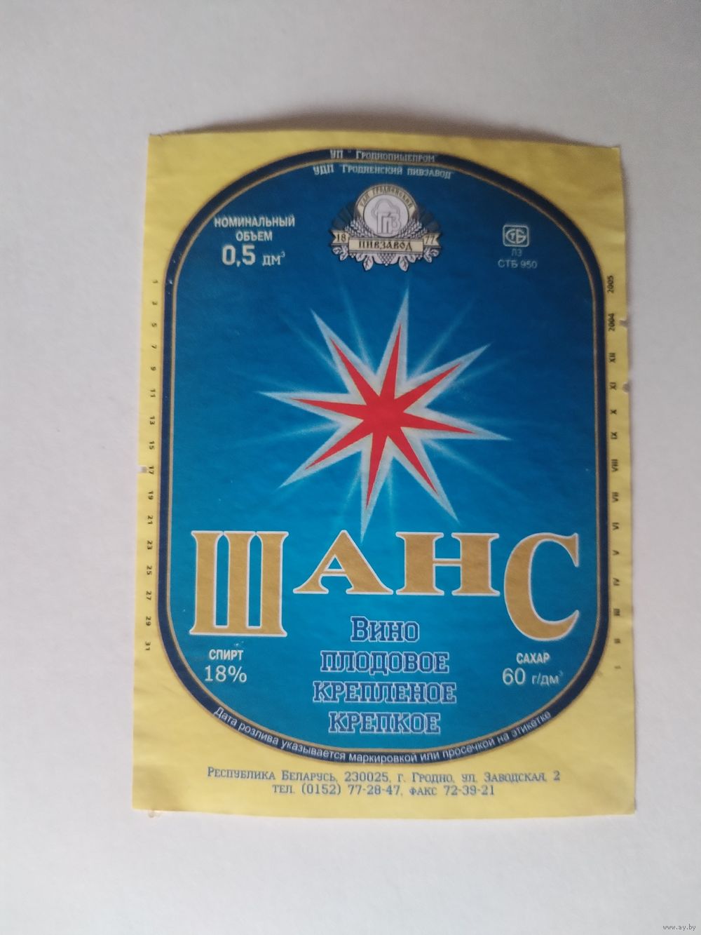 Этикетка от вина Гродненского пивзавода.