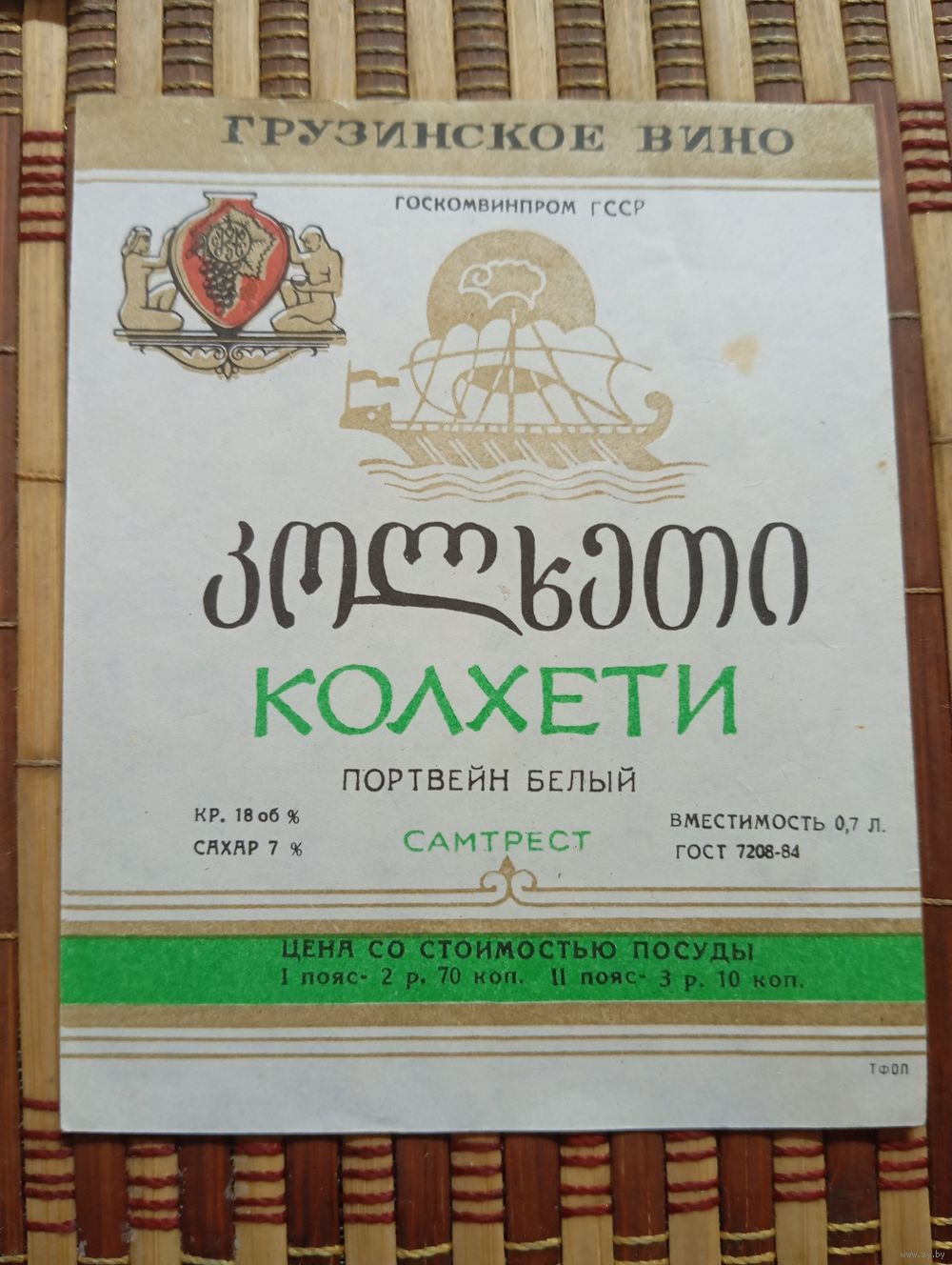 Этикетка от вина Груз ССР