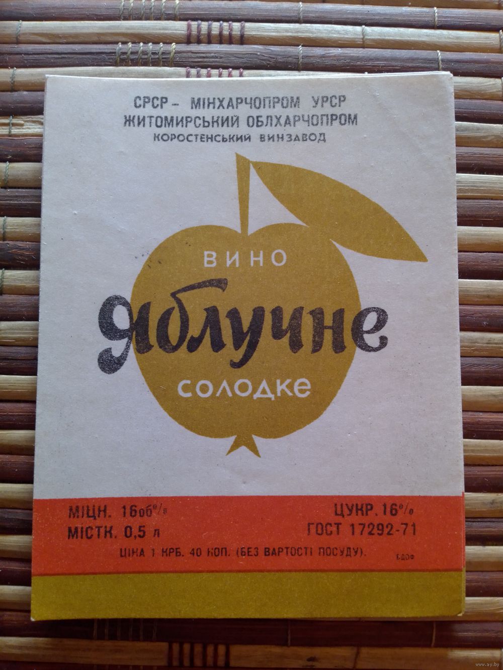 Этикетка от вина. УССР. Житомир