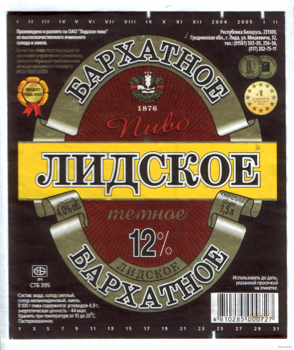 Этикетка пива Бархатное 1,5л Лидский ПЗ б/у Т783