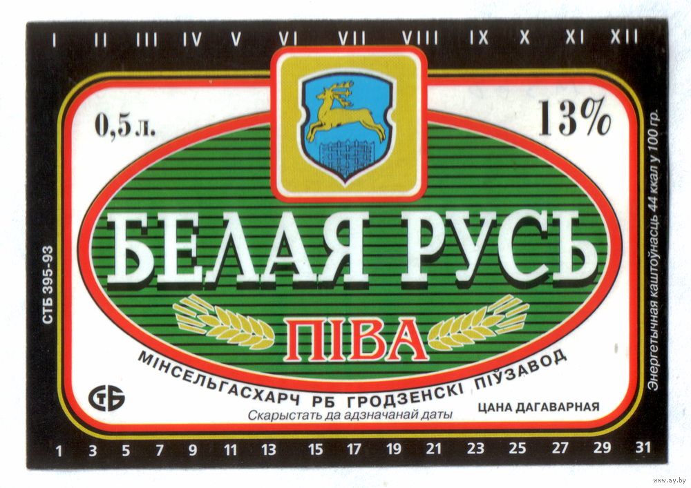 Этикетка пива Белая Русь Гродненский ПЗ М568
