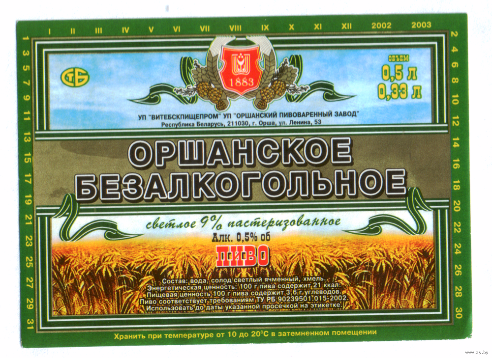 Этикетка пива Безалкогольное Оршанский ПЗ Ф716