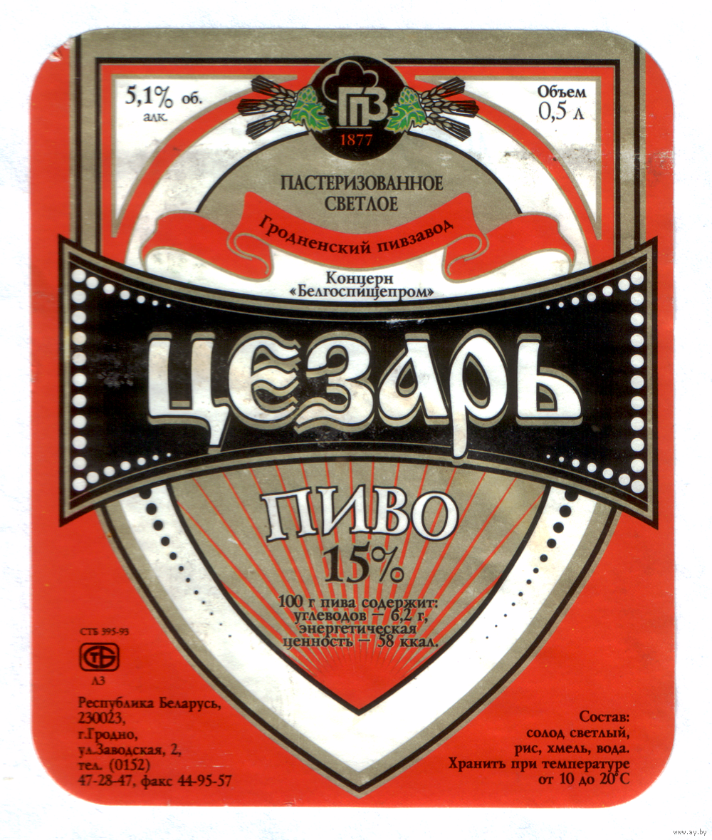 Этикетка пива Цезарь Гродненский ПЗ б/у М591