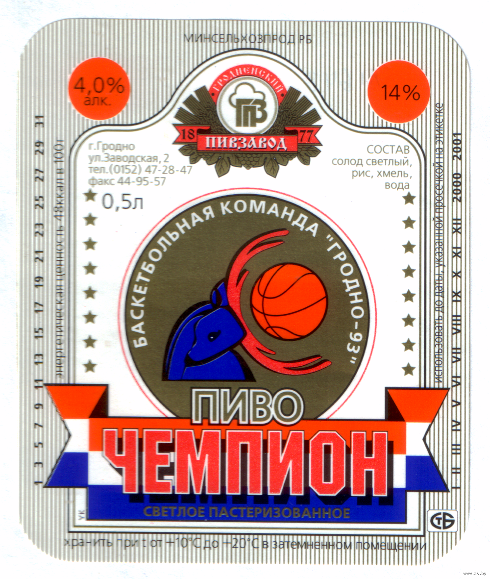 Этикетка пива Чемпион Гродненский ПЗ М648