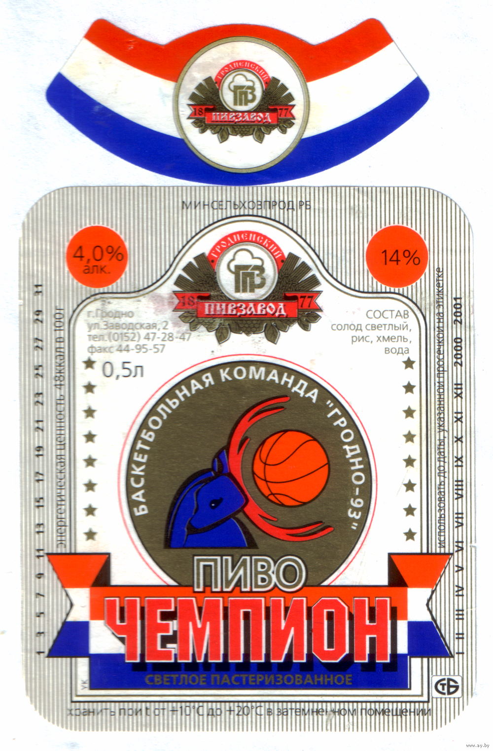 Этикетка пива Чемпион Гродненский ПЗ М705