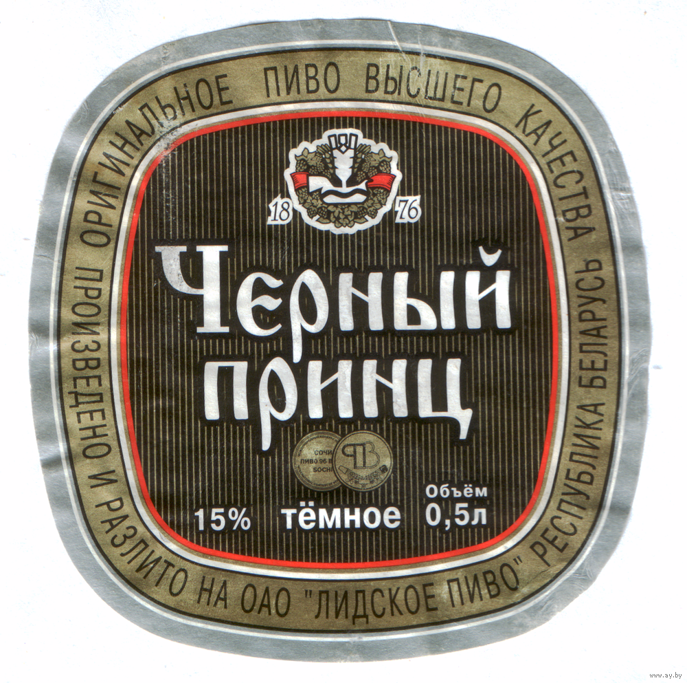 Этикетка пива Черный принц Лидский ПЗ б/у Ц004