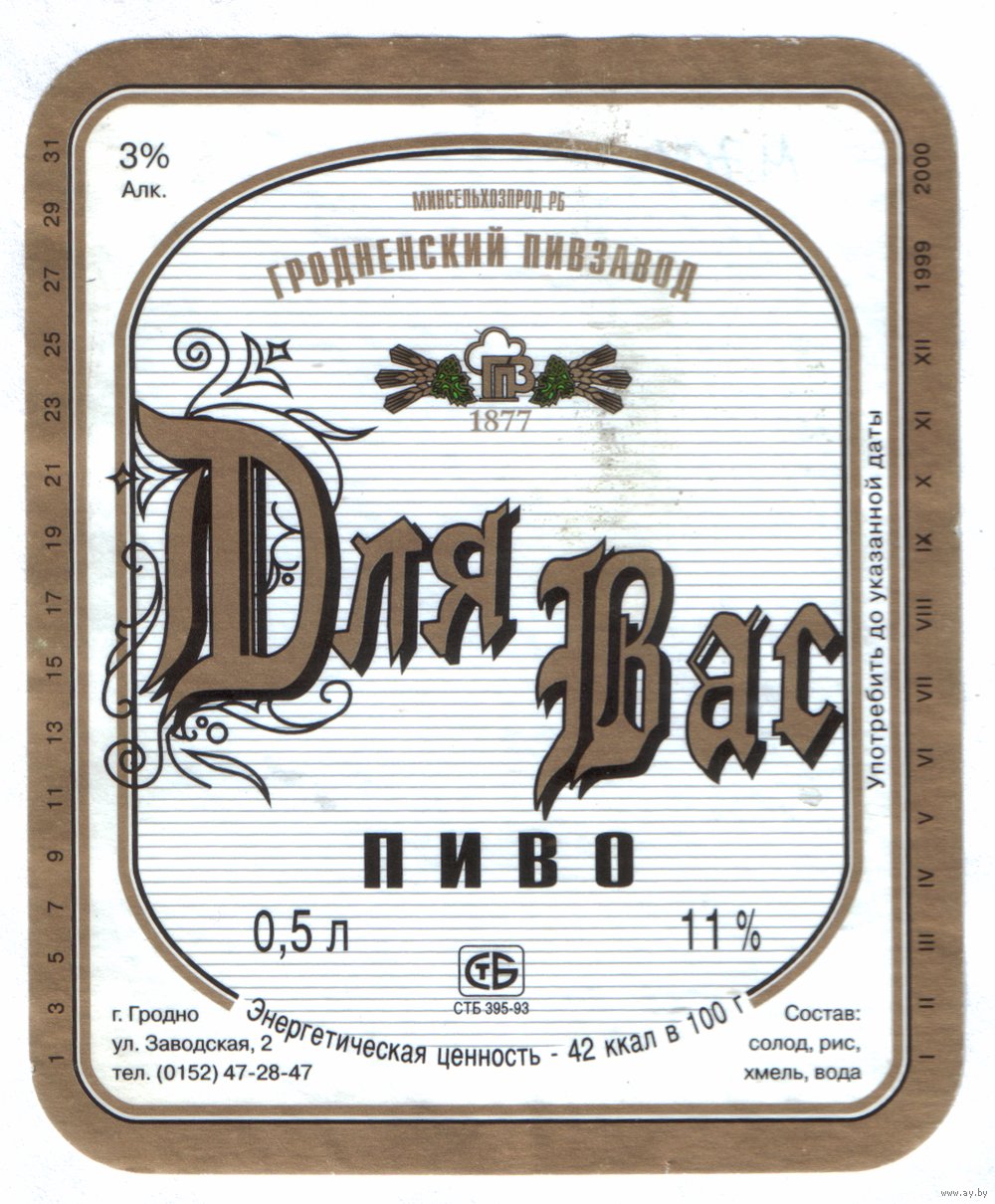 Этикетка пива Для Вас Гродненский ПЗ М704