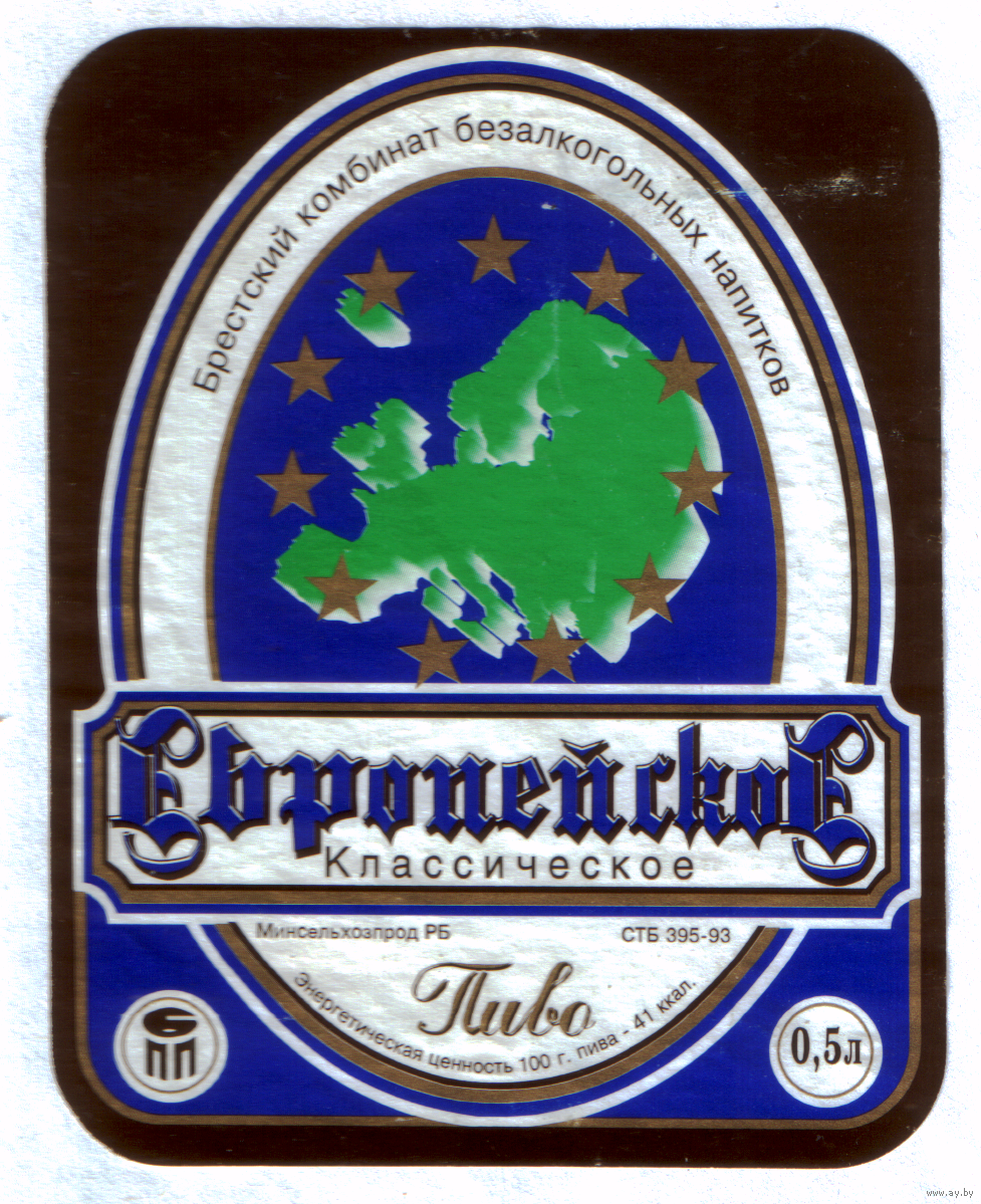 Этикетка пива Европейское Брестский ПЗ б/у М724