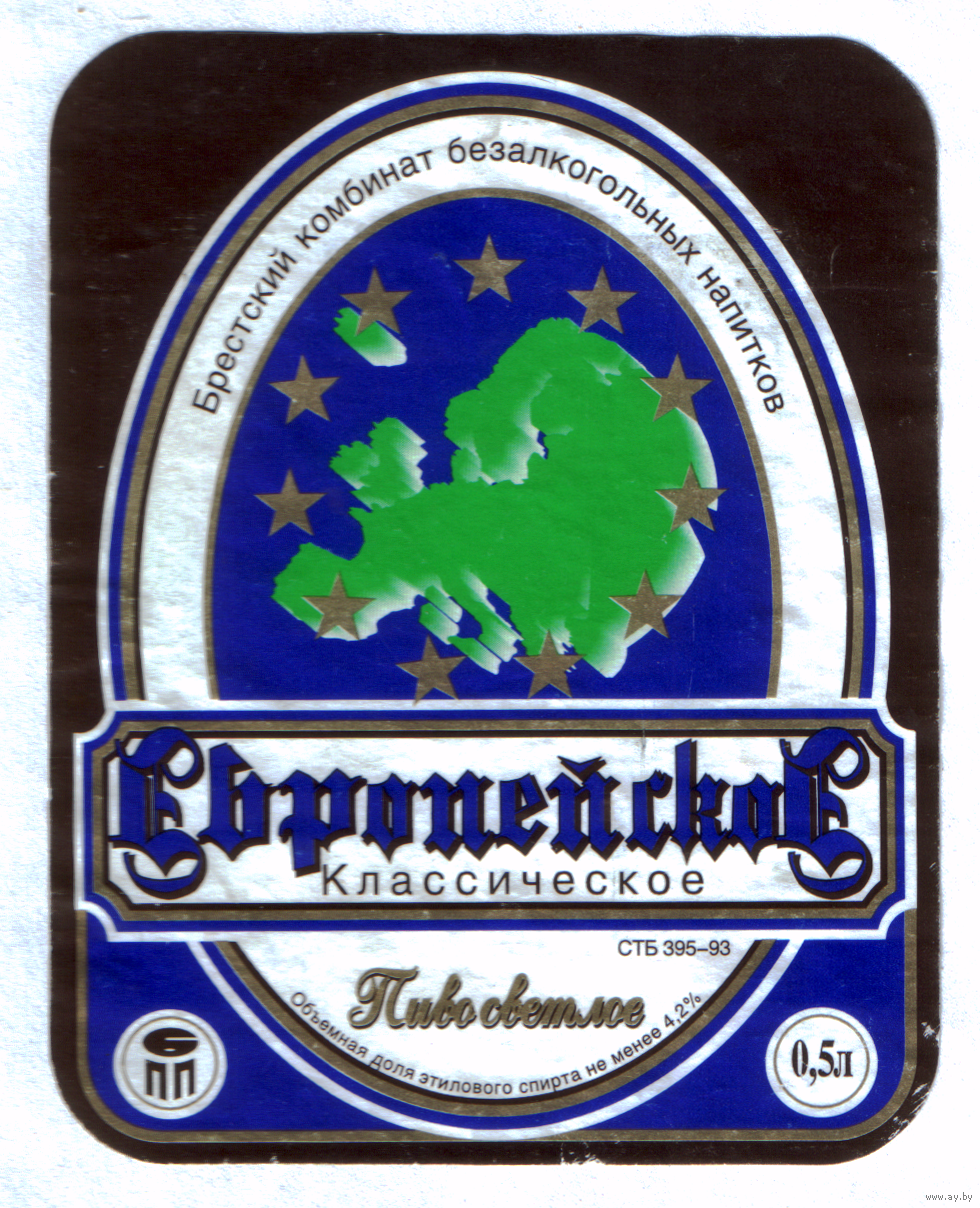 Этикетка пива Европейское Брестский ПЗ б/у М735