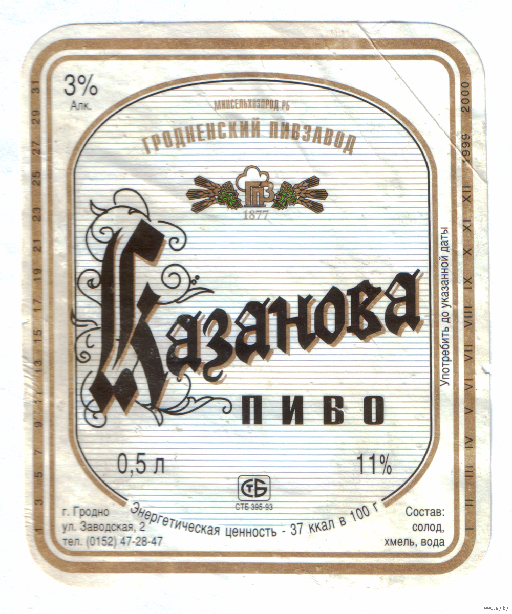 Этикетка пива Казанова Гродненский ПЗ б/у М587