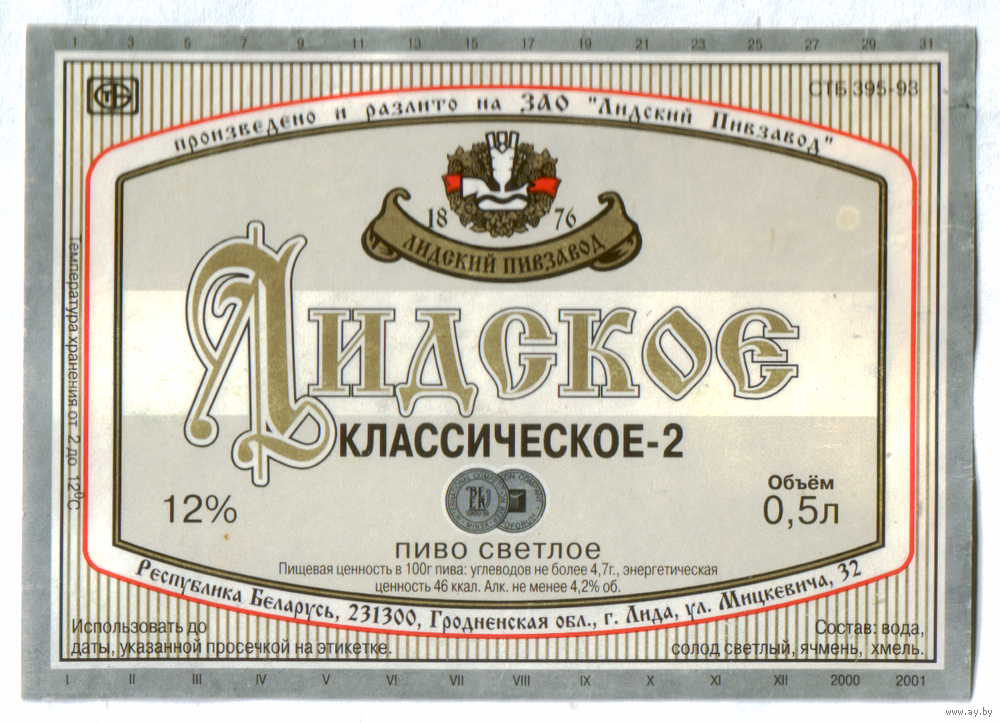Этикетка пива Классическое-2 Лидский ПЗ Т708