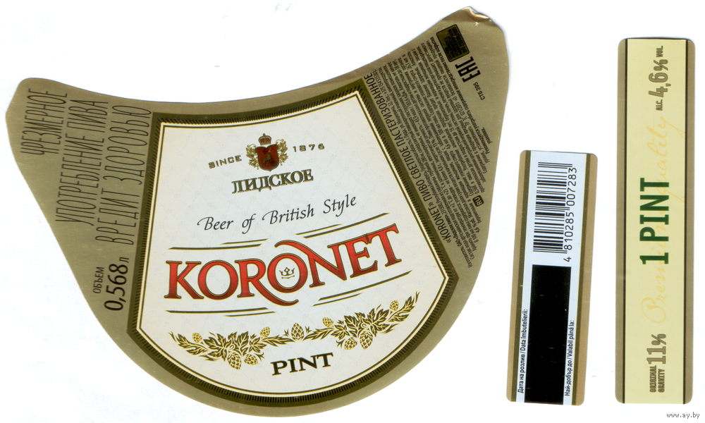 Этикетка пива KORONET Lager Лидский ПЗ Т845
