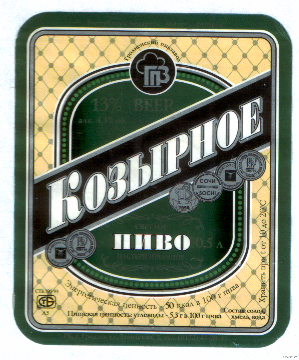 Этикетка пива Козырное Гродненский ПЗ б/у М605
