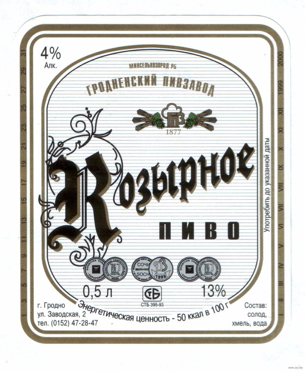 Этикетка пива Козырное Гродненский ПЗ М606