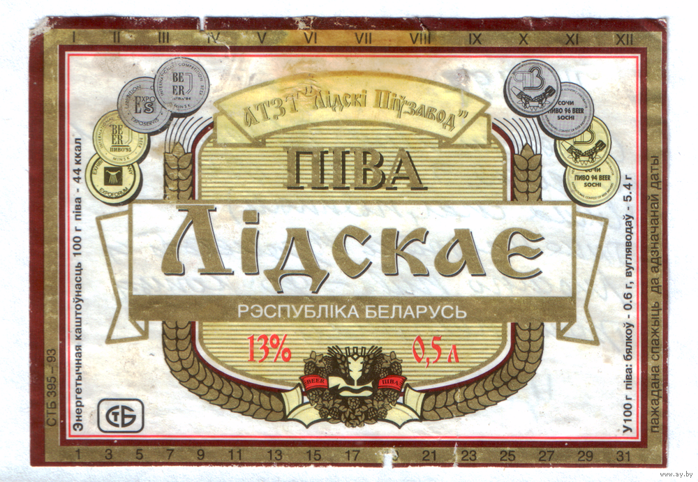 Этикетка пива Лидское Лидский ПЗ б/у Ц026