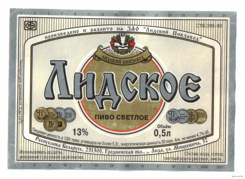 Этикетка пива Лидское Лидский ПЗ б/у Ц028