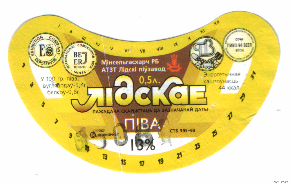 Этикетка пива Лидское Лидский ПЗ б/у ТБ293