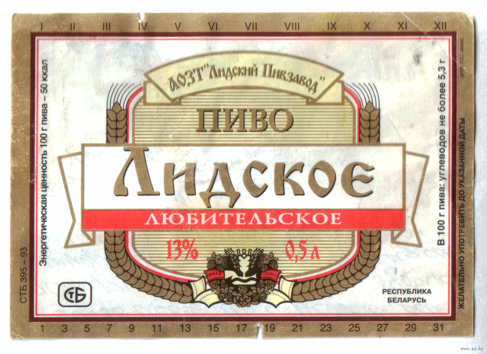 Этикетка пива Любительское Лидский ПЗ б/у Ц043