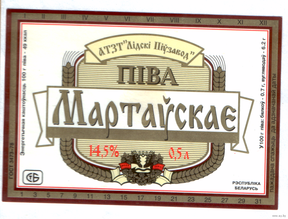 Этикетка пива Мартовское Лидский ПЗ Т731