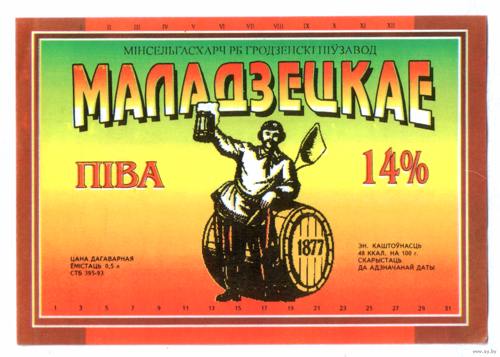 Этикетка пива Молодецкое Гродненский ПЗ М571