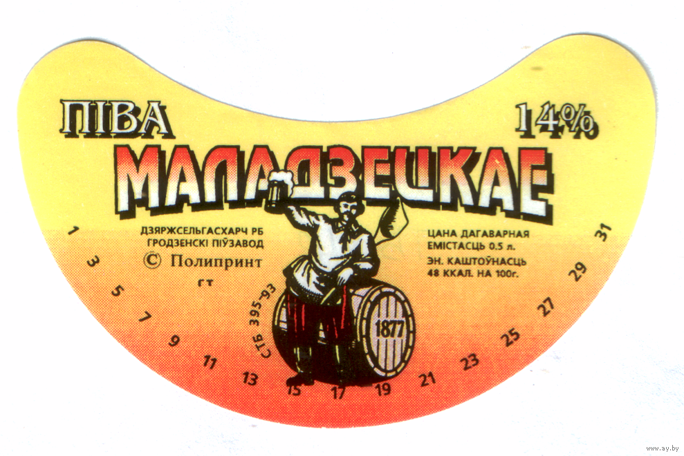 Этикетка пива Молодецкое Гродненский ПЗ ТБ310