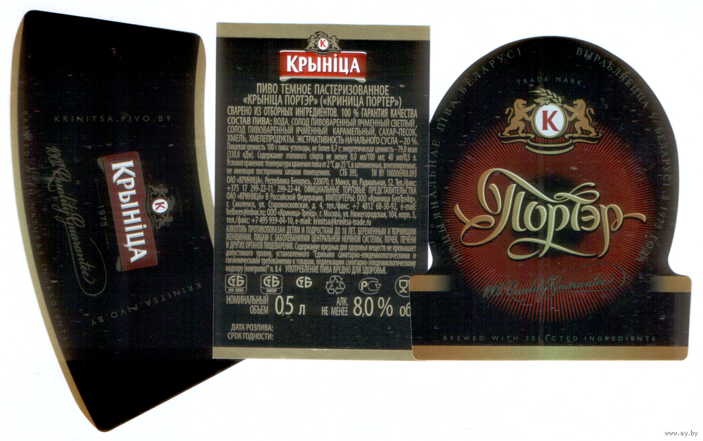 Этикетка пива Портер ПЗ Крыница М657