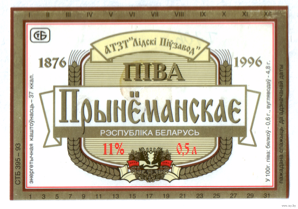 Этикетка пива Принеманское Лидский ПЗ Т706