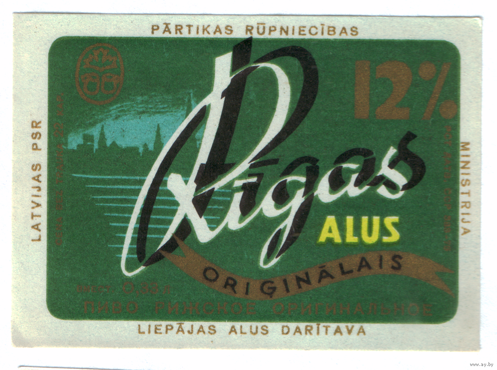 Этикетка пива Рижское Прибалтика Ф991