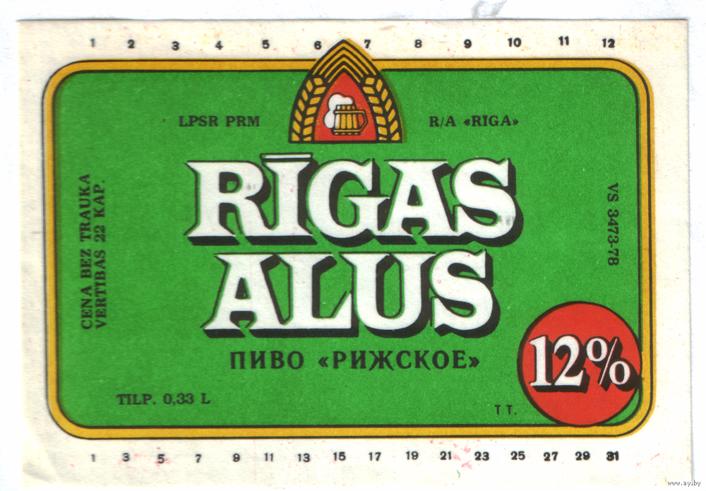 Этикетка пива Рижское Прибалтика Ф992