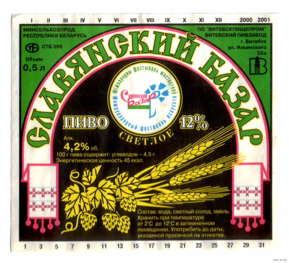 Этикетка пива Славянский базар Витебский ПЗ б/у М666