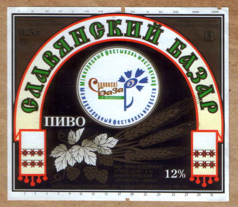 Этикетка пива Славянский базар Витебский ПЗ М766