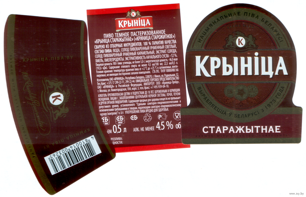 Этикетка пива Старажытнае ПЗ Крыница М656