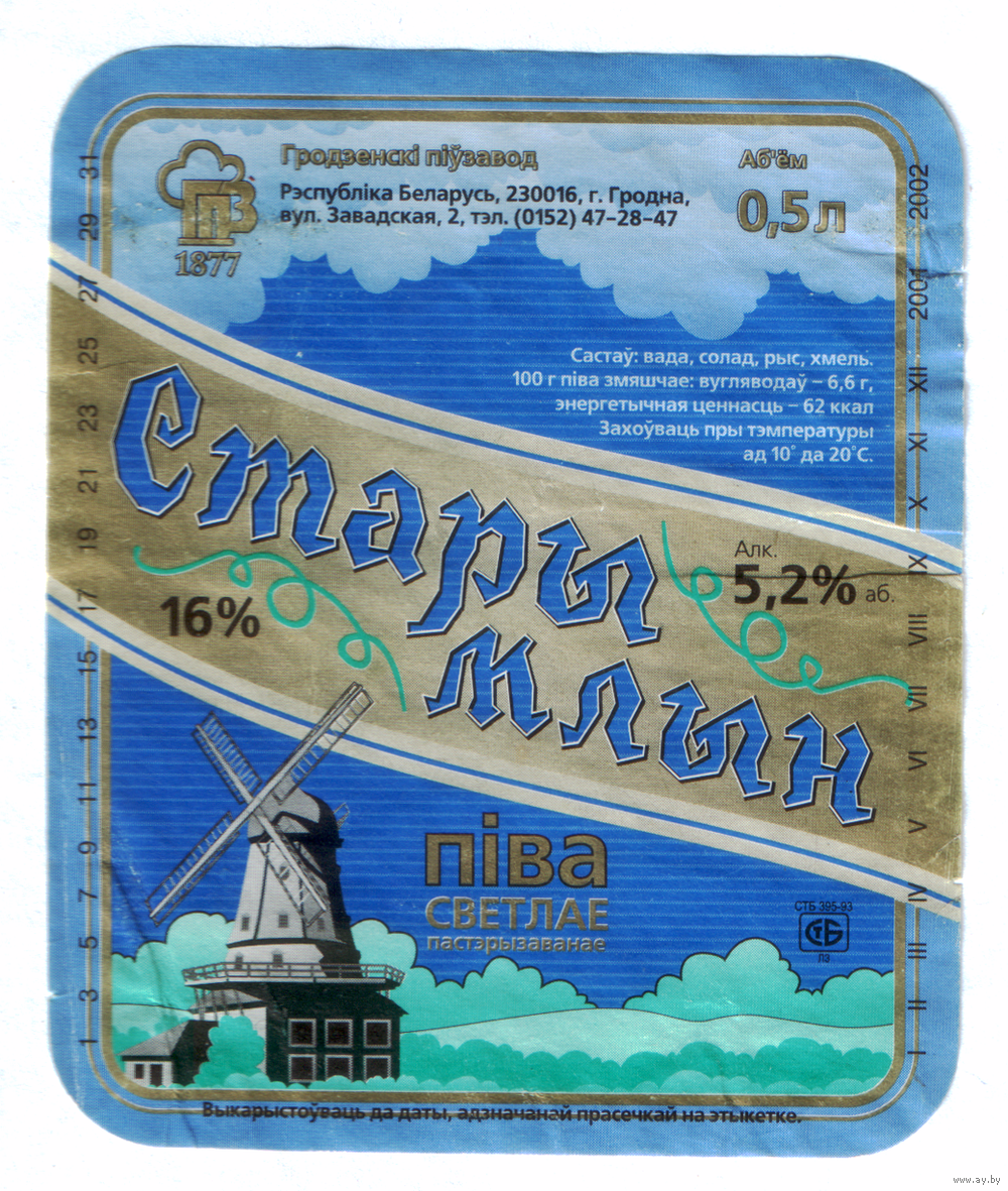 Этикетка пива Стары млын Гродненский ПЗ б/у М603