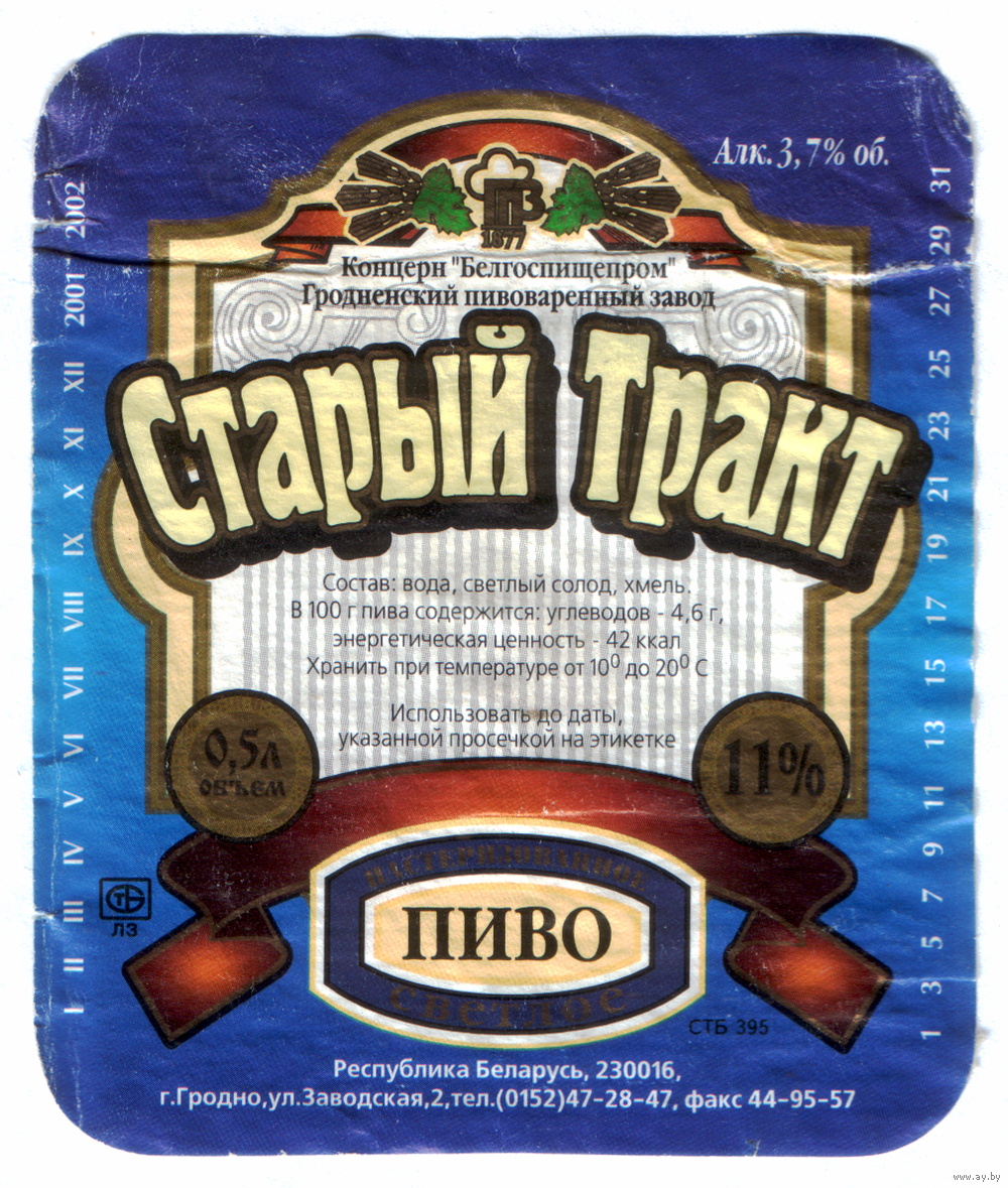 Этикетка пива Старый тракт Гродненский ПЗ б/у М602