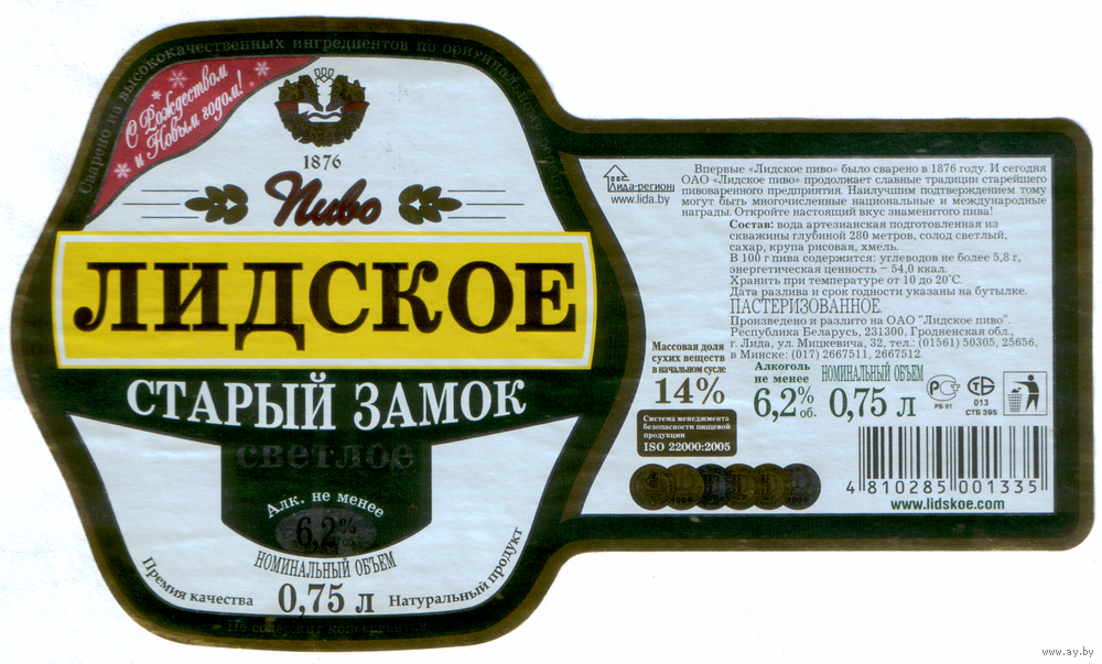 Этикетка пива Старый замок 0,75л Лидский ПЗ б/у Т764