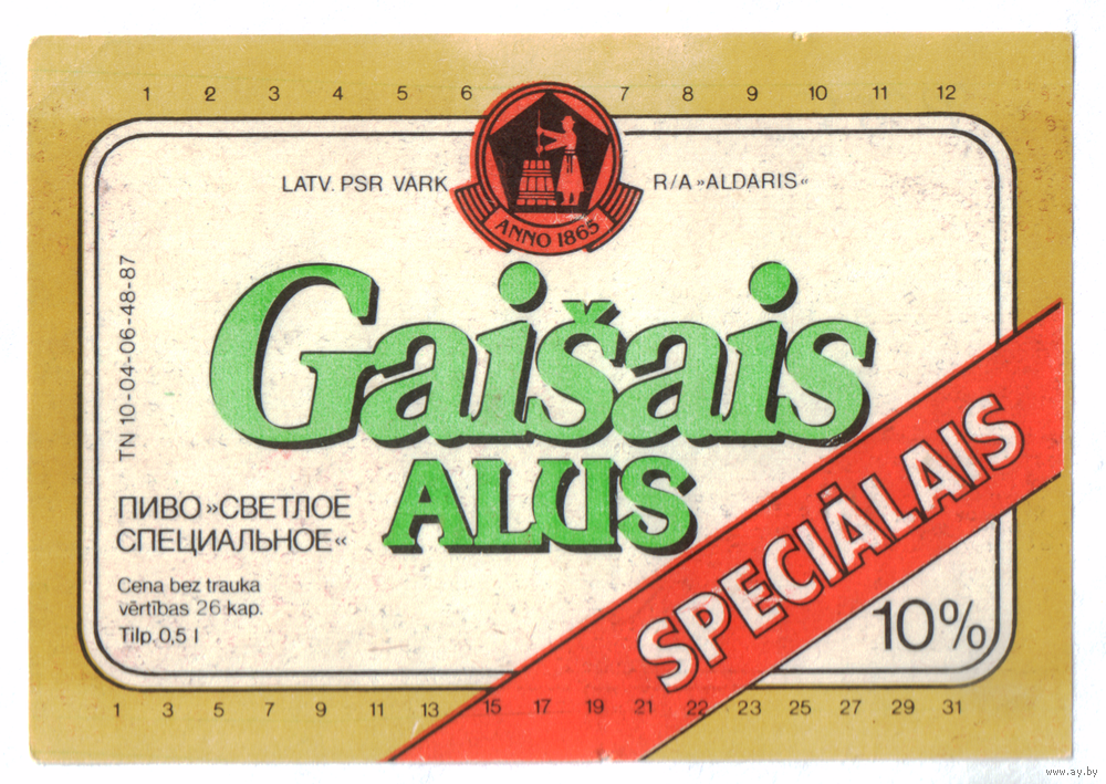 Этикетка пива Светлое специальное Латвия Ф955
