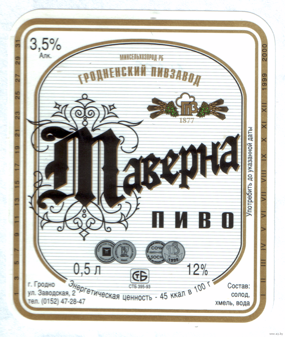 Этикетка пива Таверна Гродненский ПЗ М609