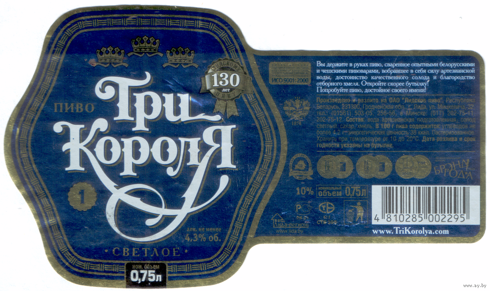 Этикетка пива Три короля-1 0,75л Лидский ПЗ б/у Т768