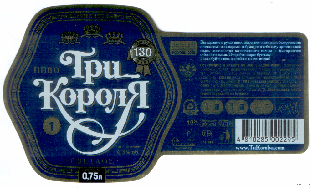 Этикетка пива Три короля-1 0,75л Лидский ПЗ Т769