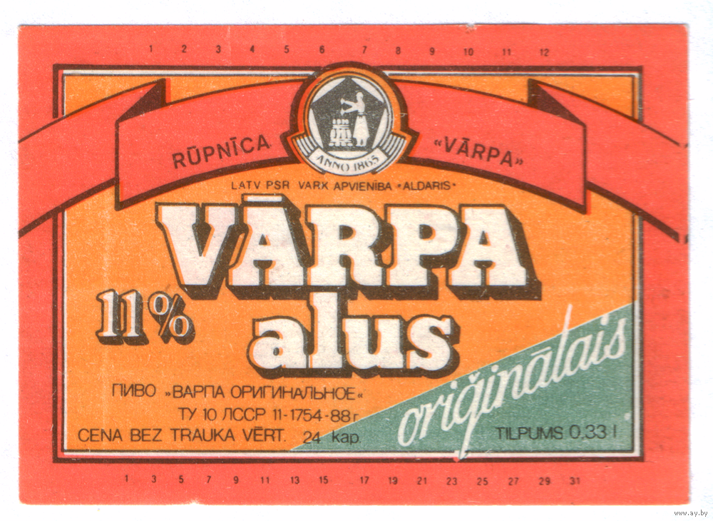 Этикетка пива Varpa Прибалтика Ф996