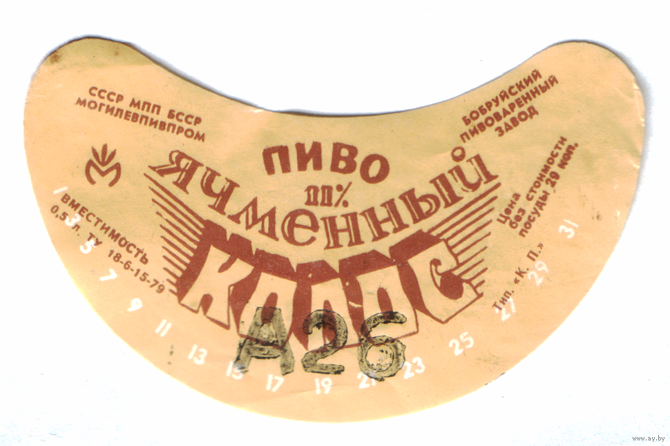 Этикетка пива Ячменный колос Бобруйский ПЗ б/у ТБ315