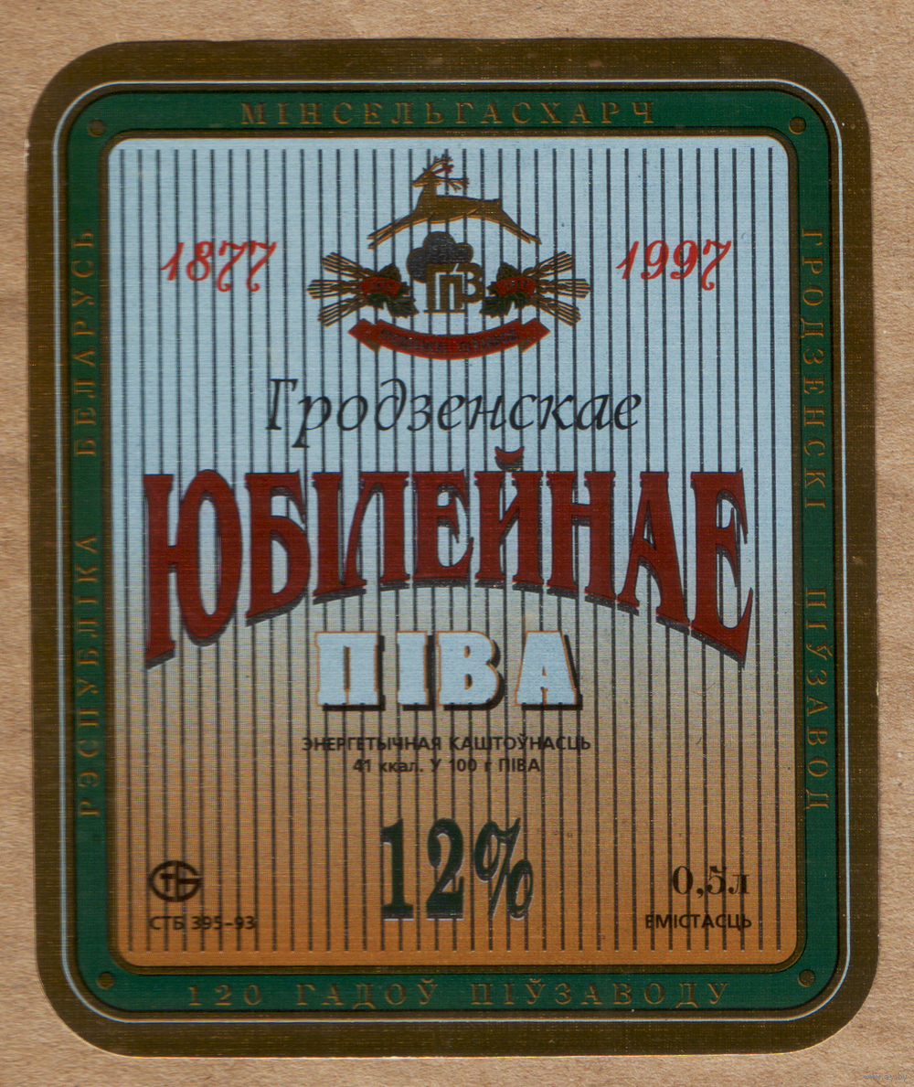 Этикетка пива Юбилейное Гродненский ПЗ М624