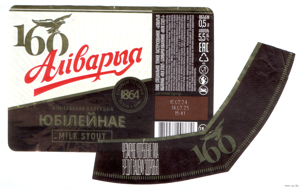 Этикетка пива Юбилейное ПЗ Аливария б/у М702