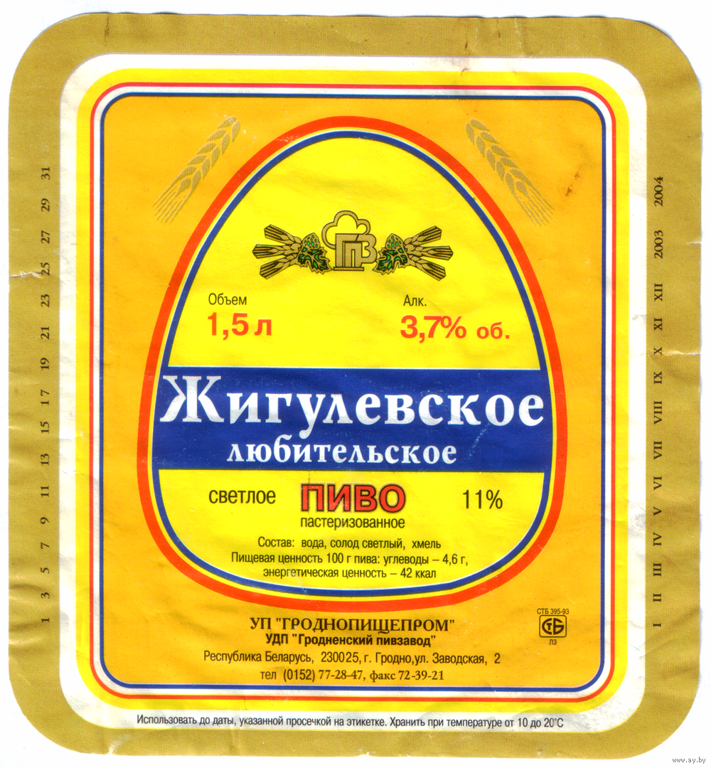 Этикетка пива Жигулевское Гродненский ПЗ 1,5л б/у М580
