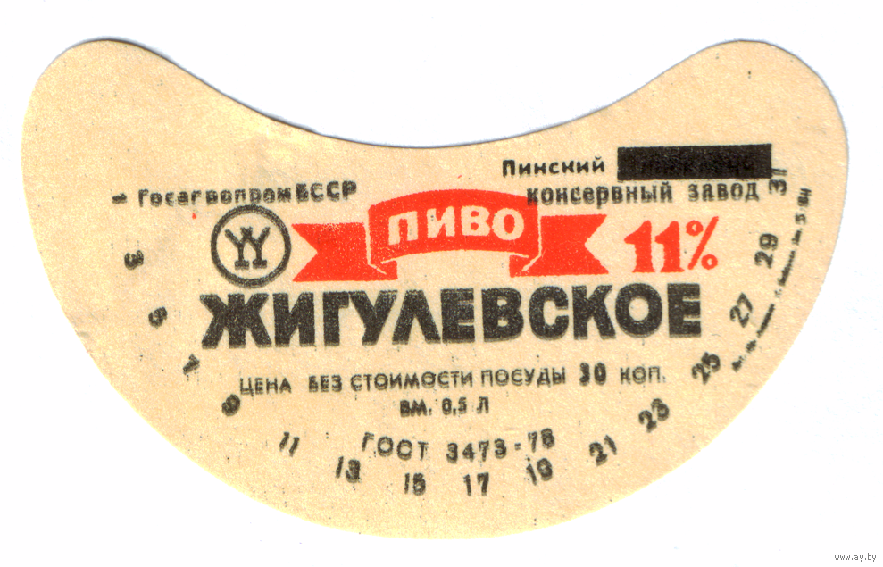 Этикетка пива Жигулевское Пинский ПЗ ТБ312