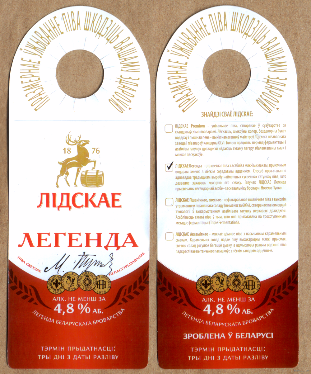 Этикетка разливного пива Легенда Лидский ПЗ