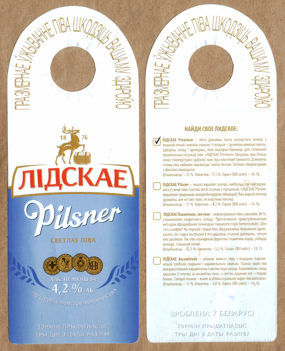 Этикетка разливного пива Pilsner Лидский ПЗ