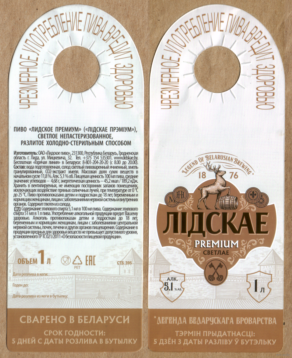 Этикетка разливного пива Премиум Лидский ПЗ