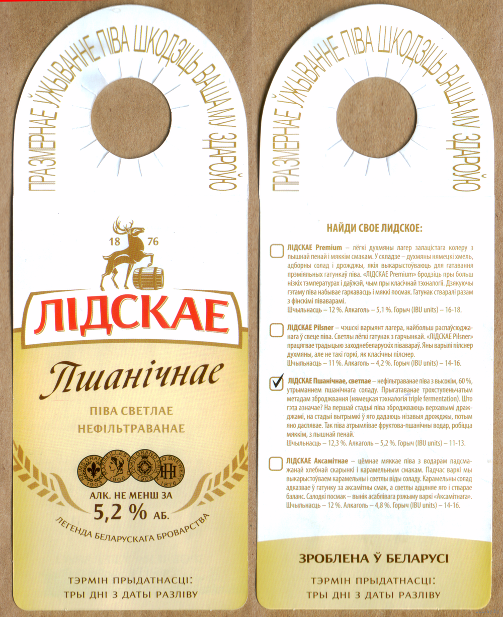 Этикетка разливного пива Пшеничное Лидский ПЗ
